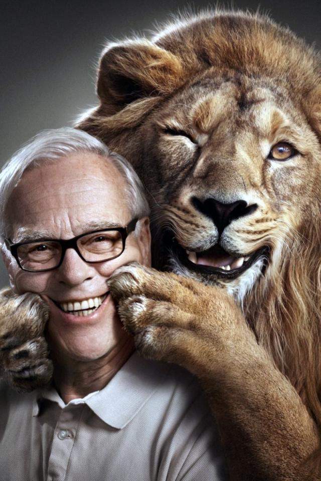 Wallpaper Lion hugs trainer