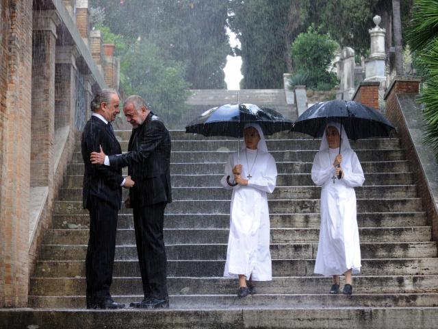 Wallpaper Monks in the rain