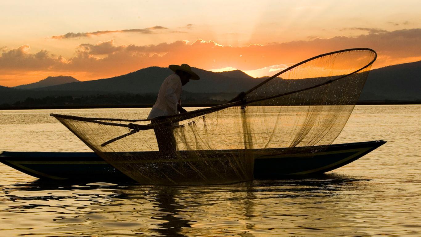 Wallpaper A fisherman throws the net