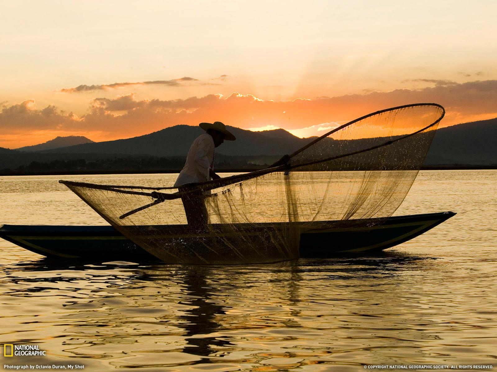 Wallpaper A fisherman throws the net