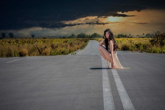 » Wallpaper Ballerina sat on the road