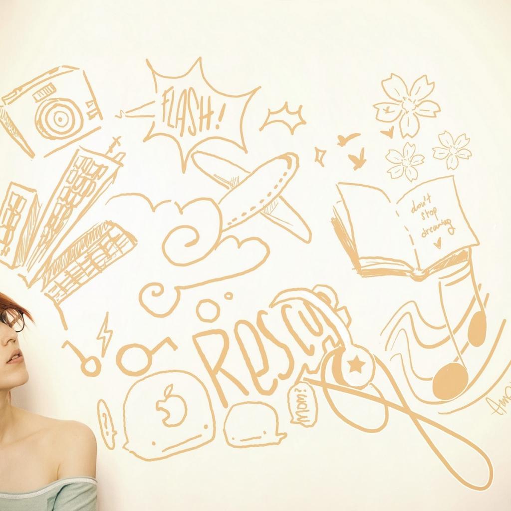Wallpaper Girl in glasses looking at drawings