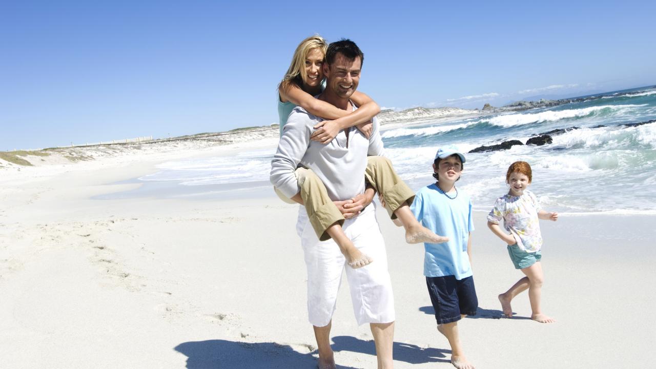 Wallpaper The family walking along the beach