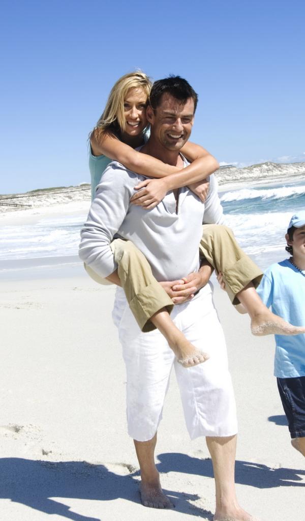 Wallpaper The family walking along the beach