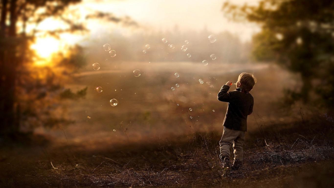 Wallpaper The boy starts soap bubbles
