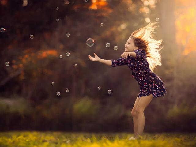 Wallpaper Girl play with soap bubbles