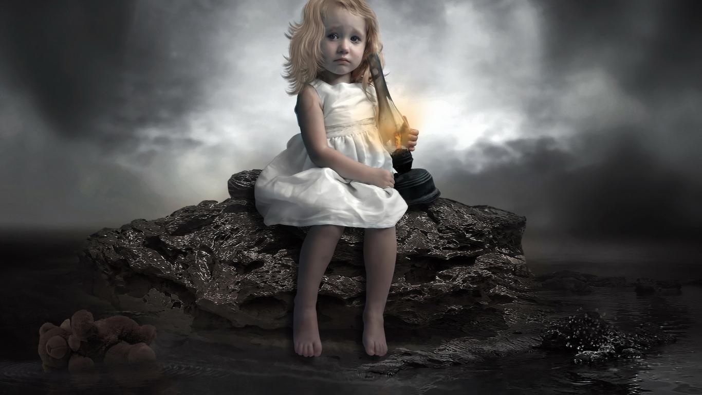 Wallpaper Girl with a kerosene lamp