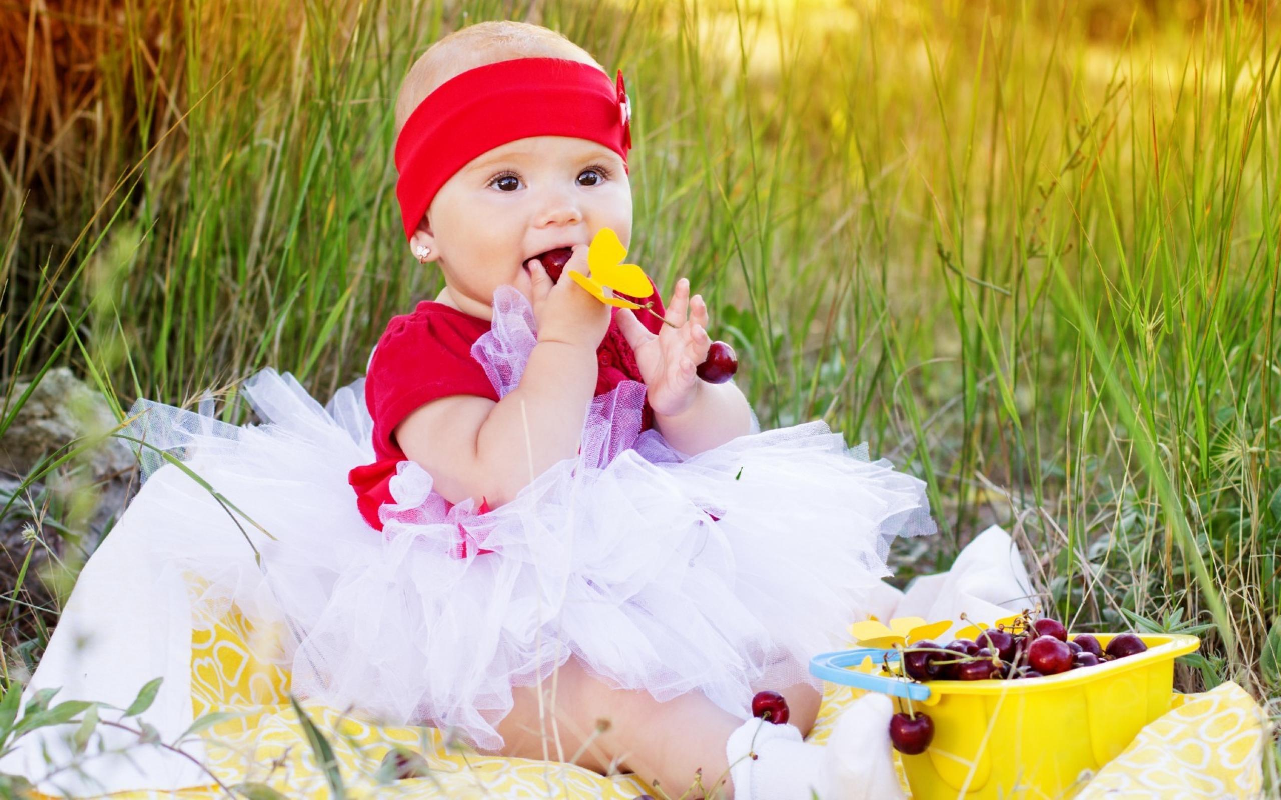 Wallpaper Girl eats ripe cherries