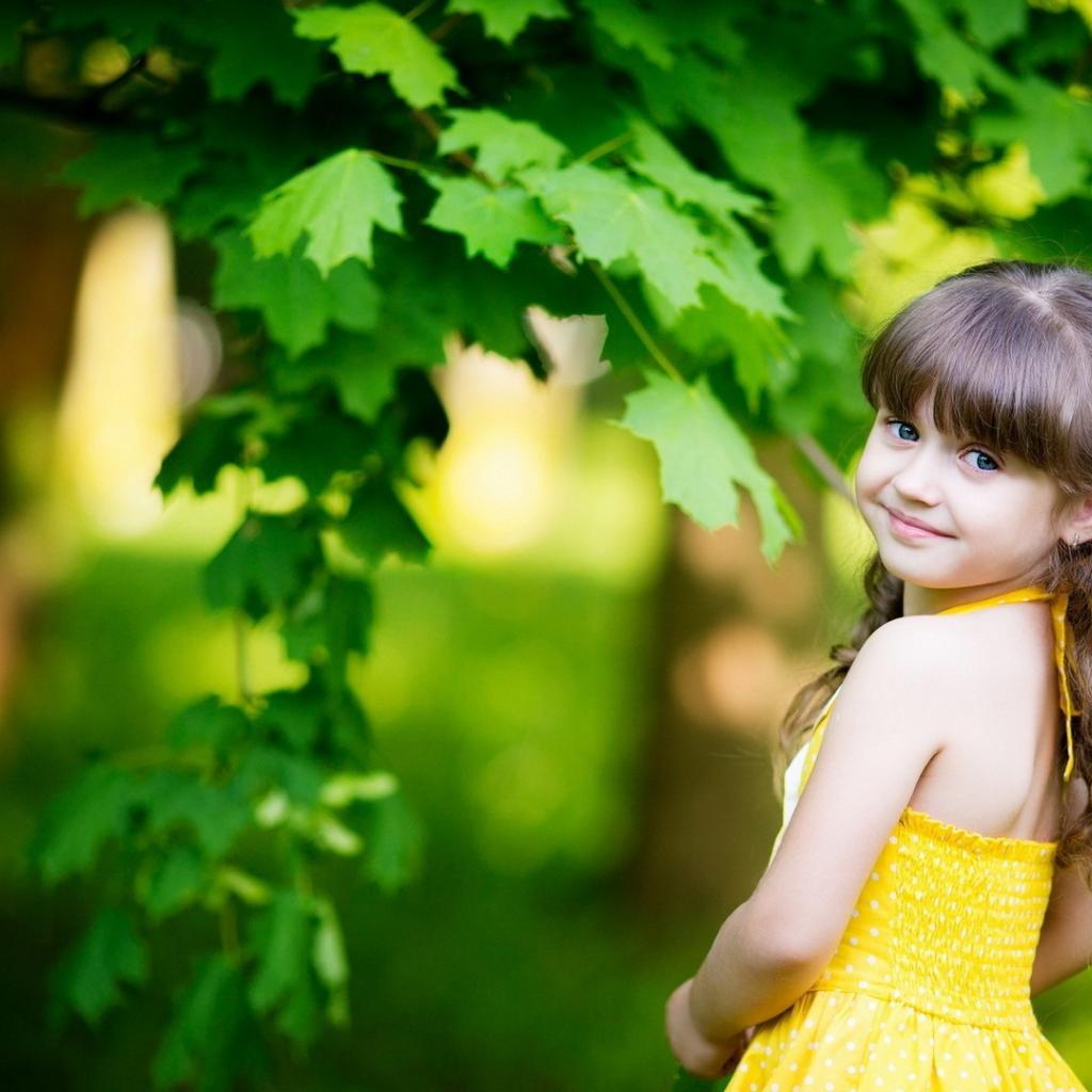 Wallpaper Little girl in green maple