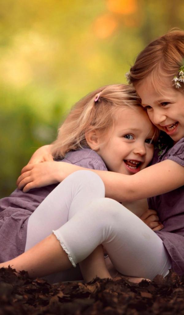 Wallpaper Two cute little sisters playing in the park