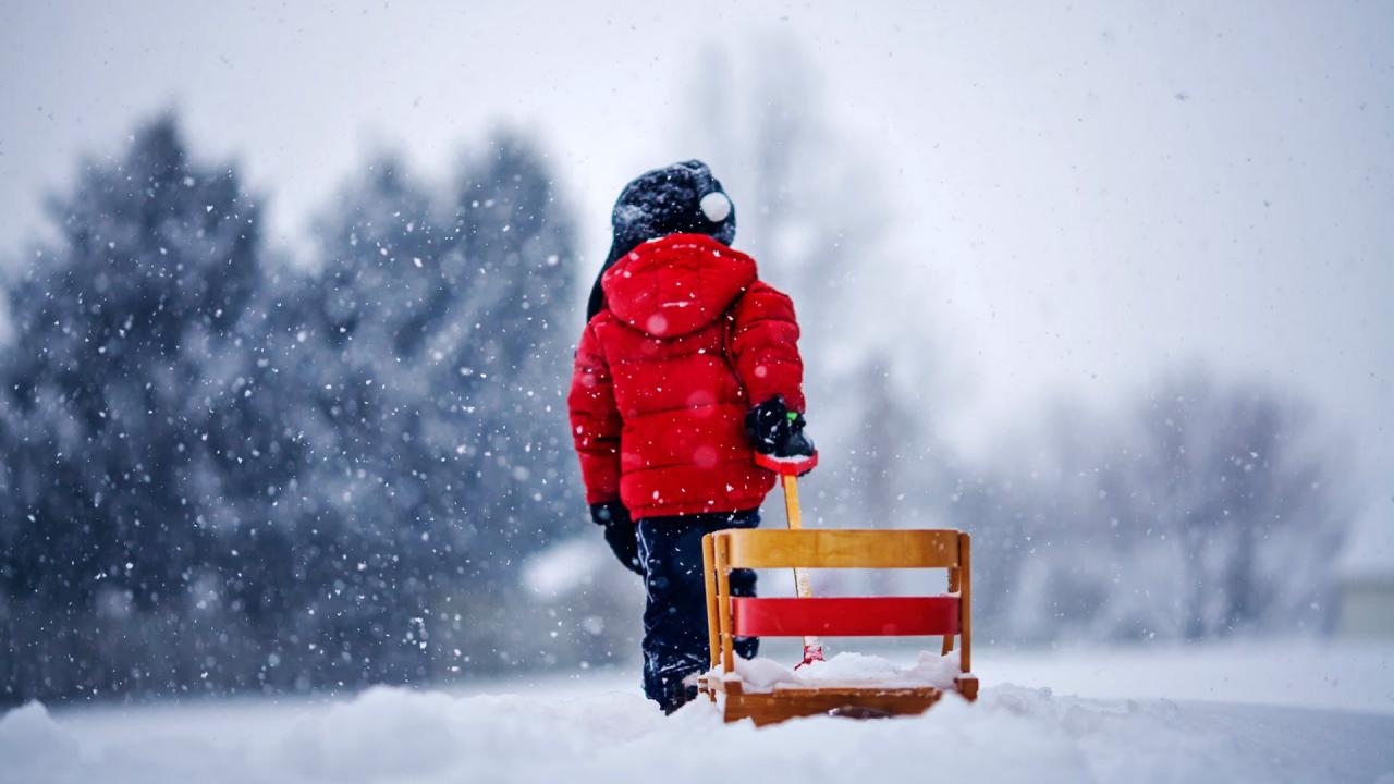 Wallpaper A child carries sled