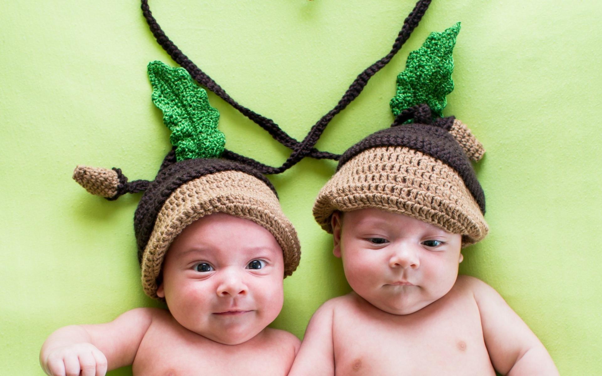 Wallpaper Little twins cute caps