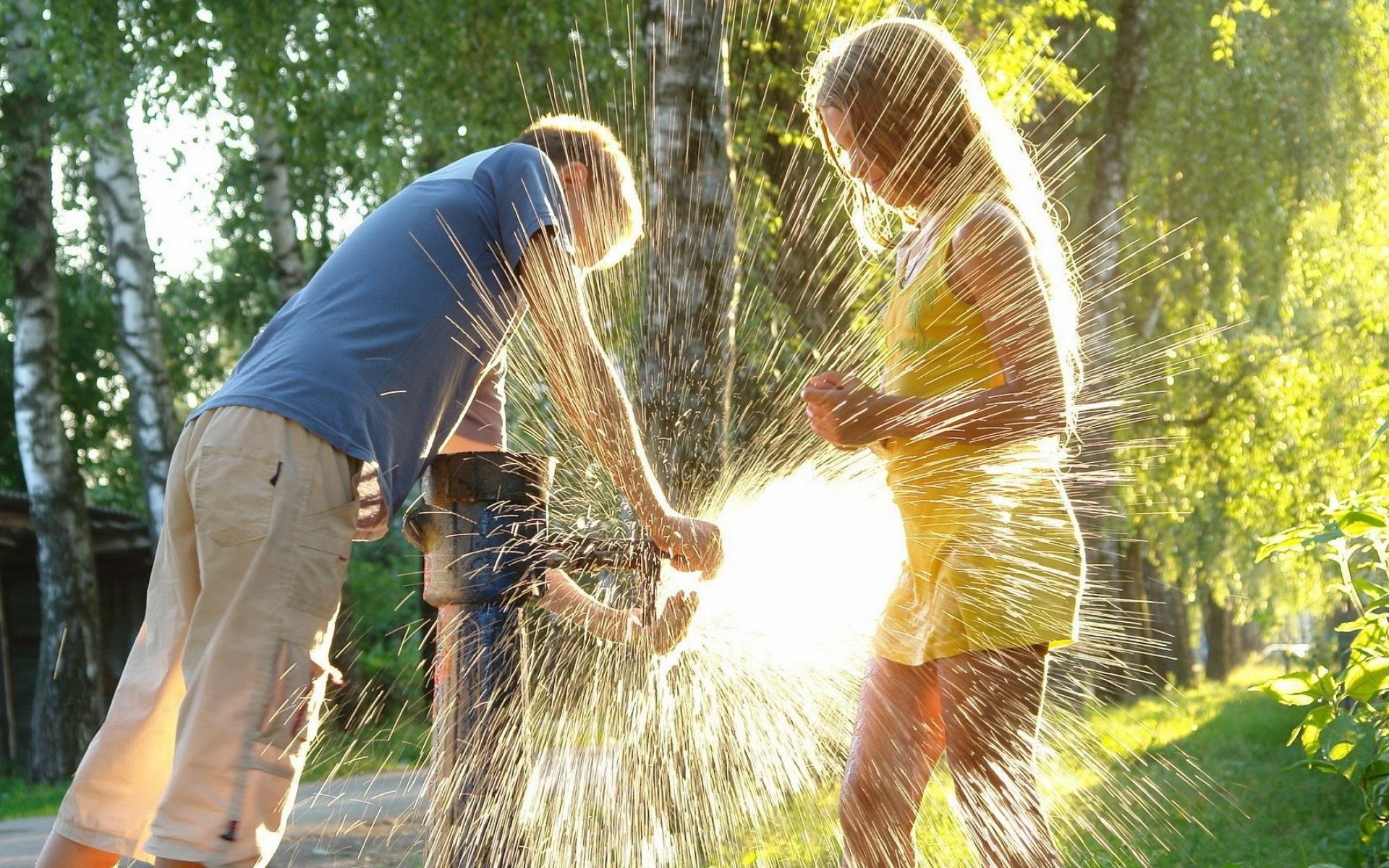 Wallpaper Children playing with water