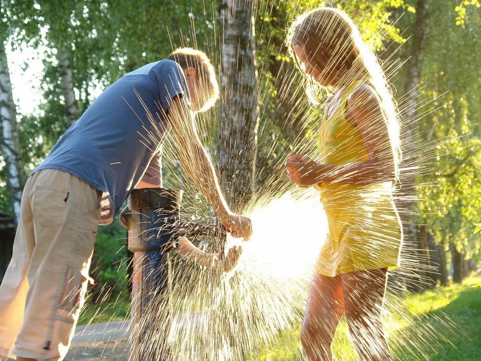 Wallpaper Children playing with water