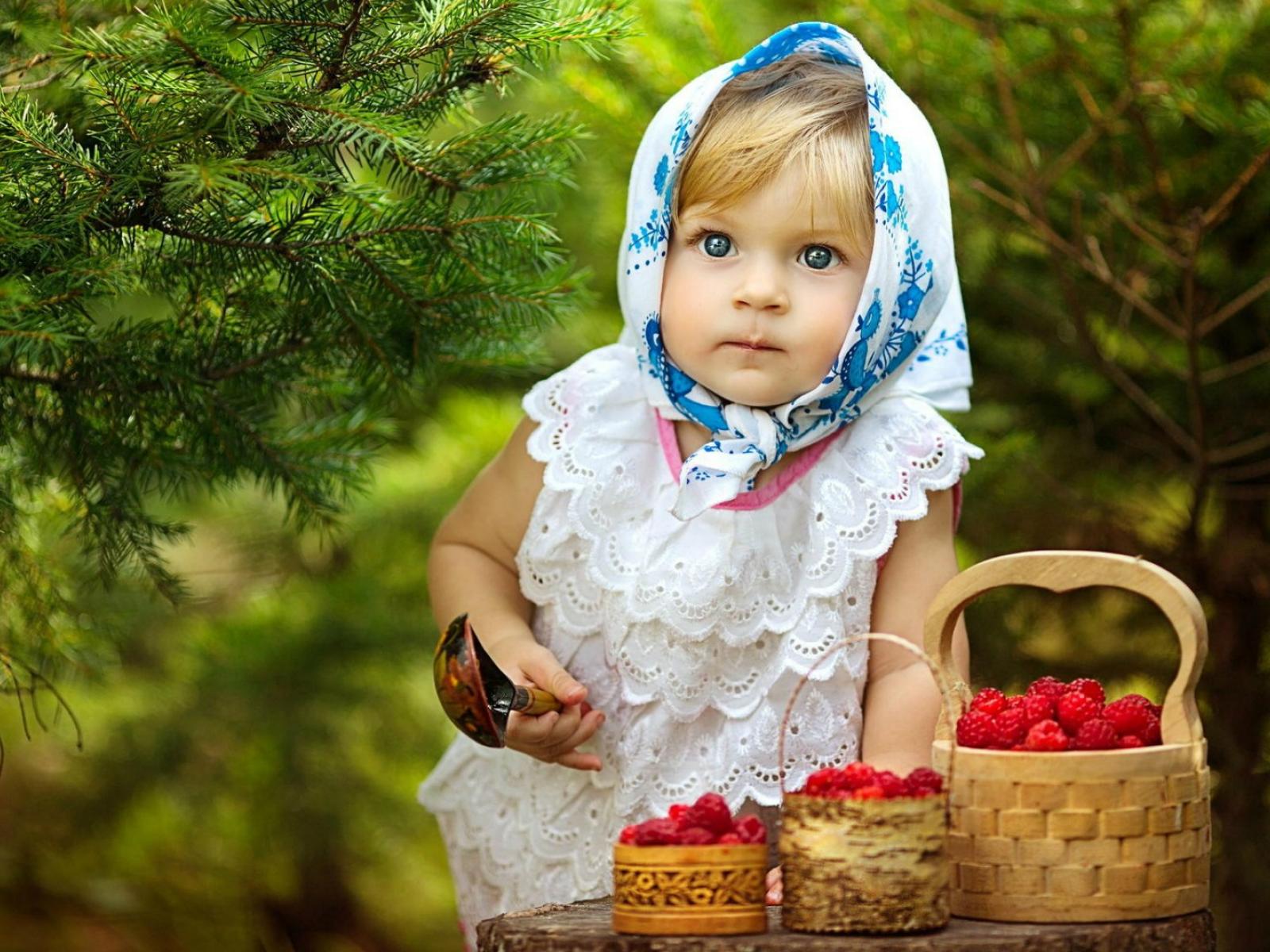 Wallpaper Girl with baskets of wild berries