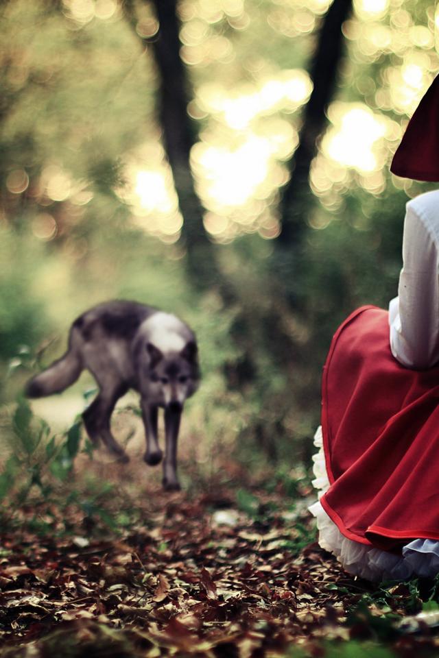 Wallpaper Little red riding hood in the forest