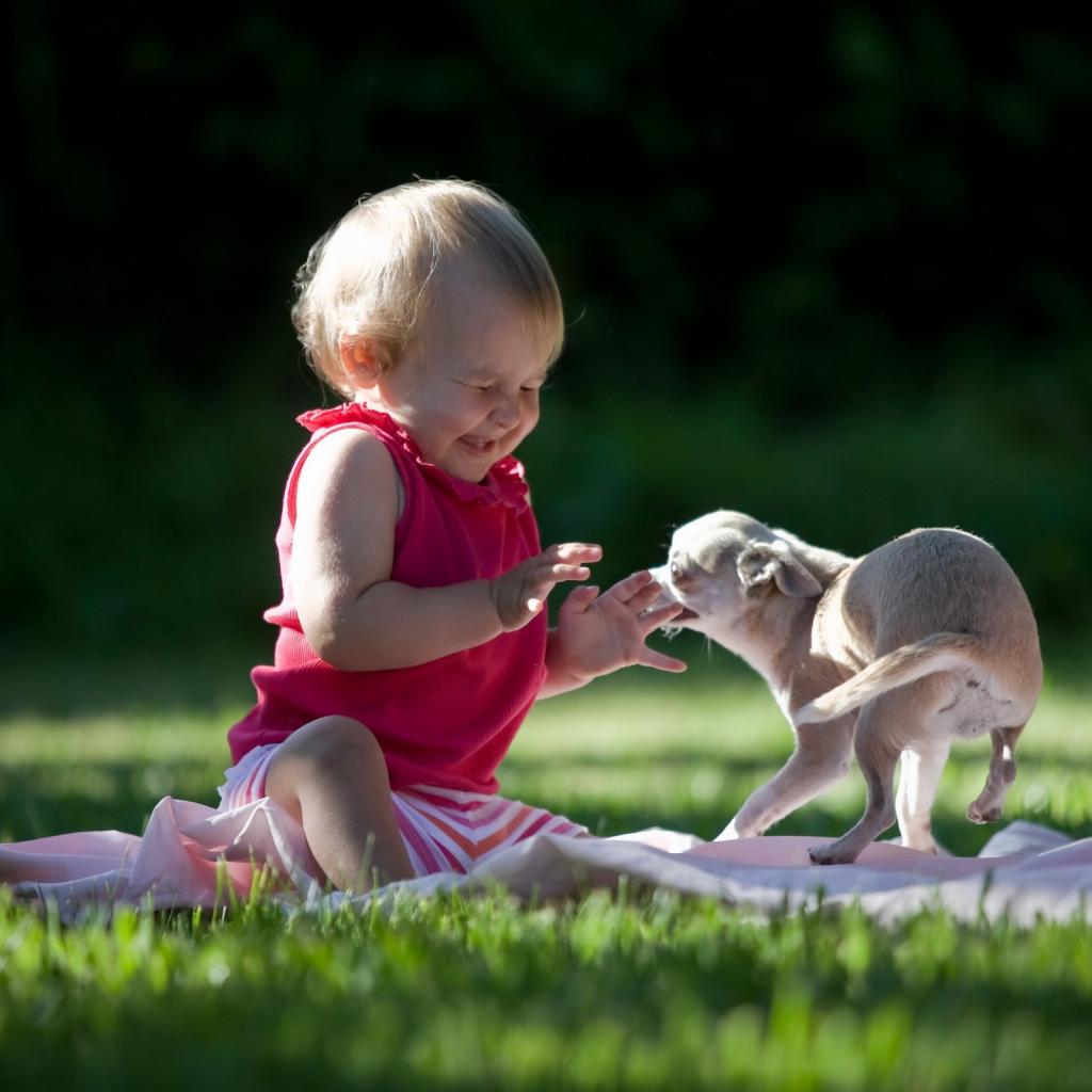 Wallpaper The child plays with dog