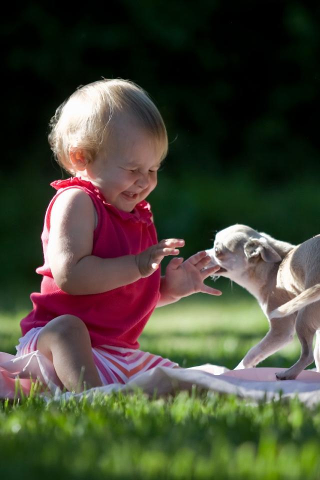 Wallpaper The child plays with dog