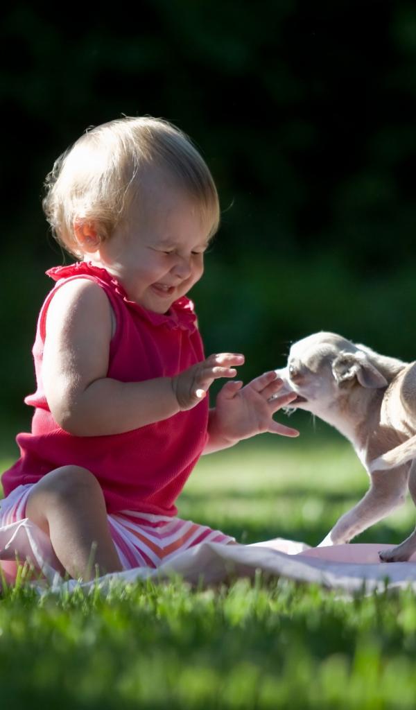 Wallpaper The child plays with dog