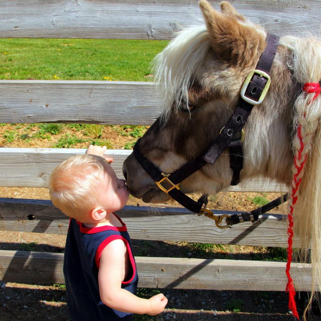 Wallpaper Baby kisses horse