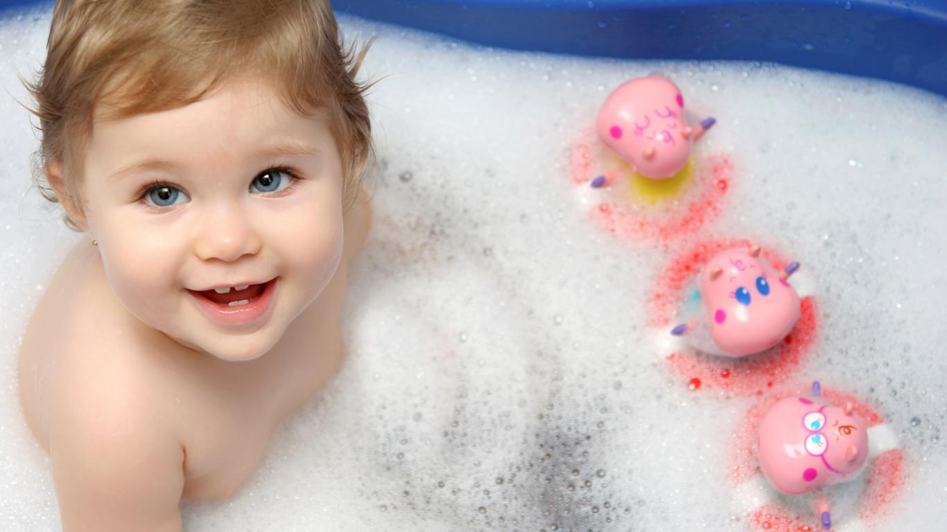 Wallpaper Cute baby bath