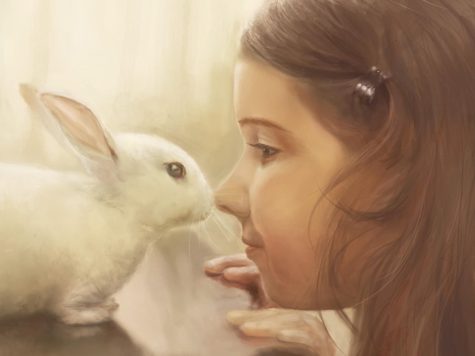 Wallpaper The picture of the girl with the rabbit