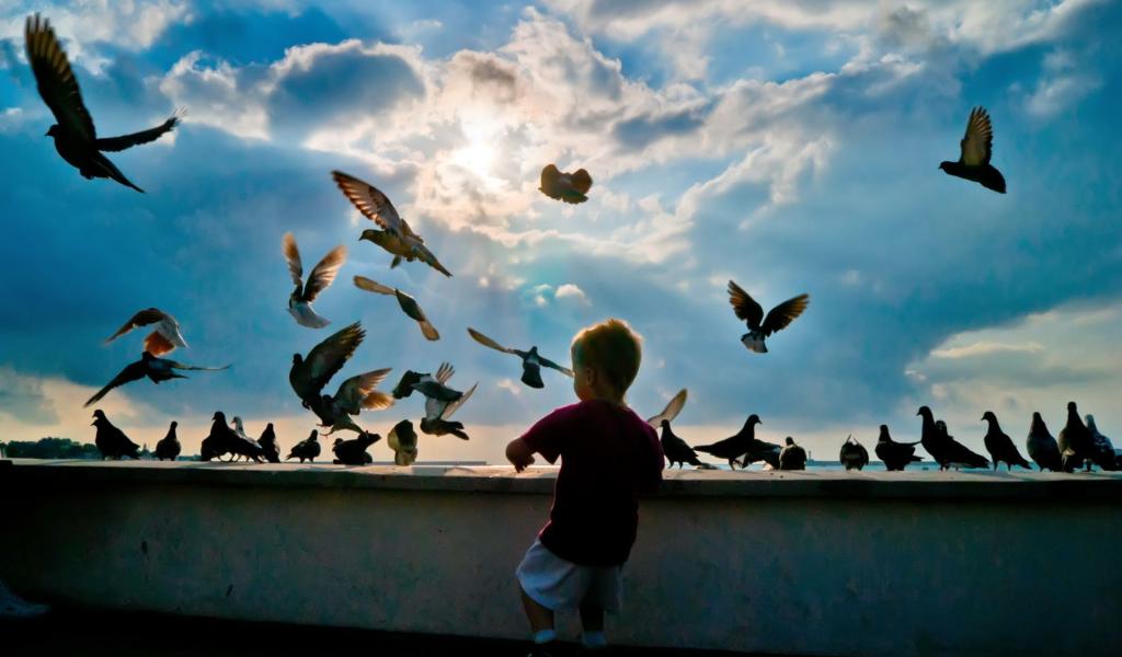 Wallpaper Child and pigeons