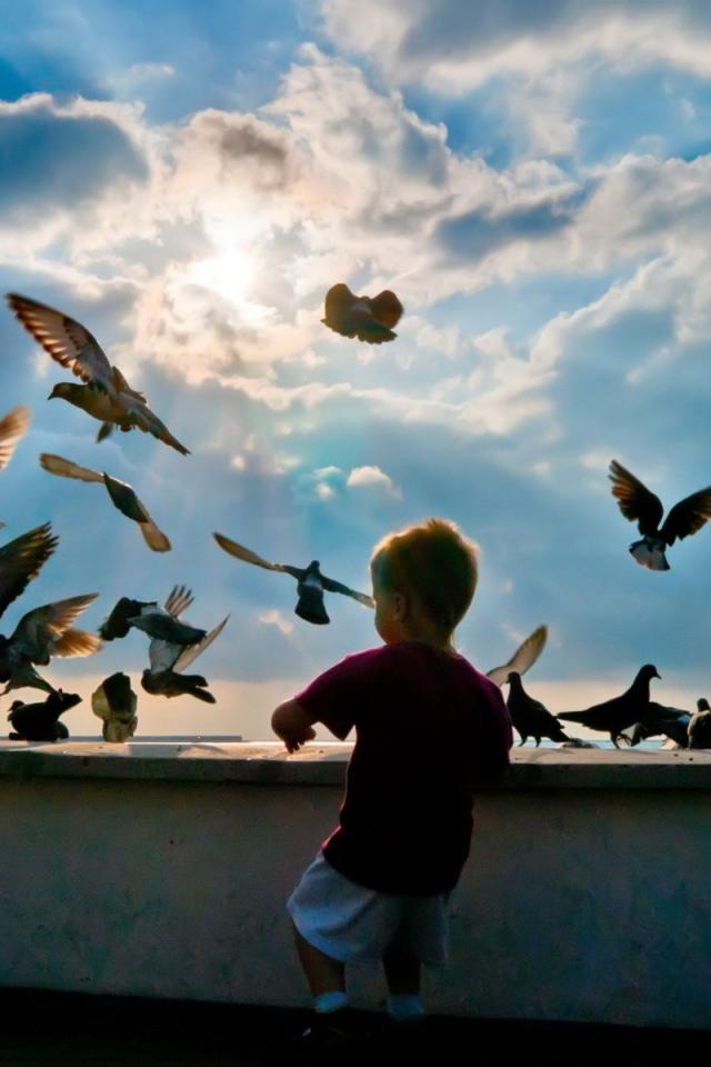 Wallpaper Child and pigeons