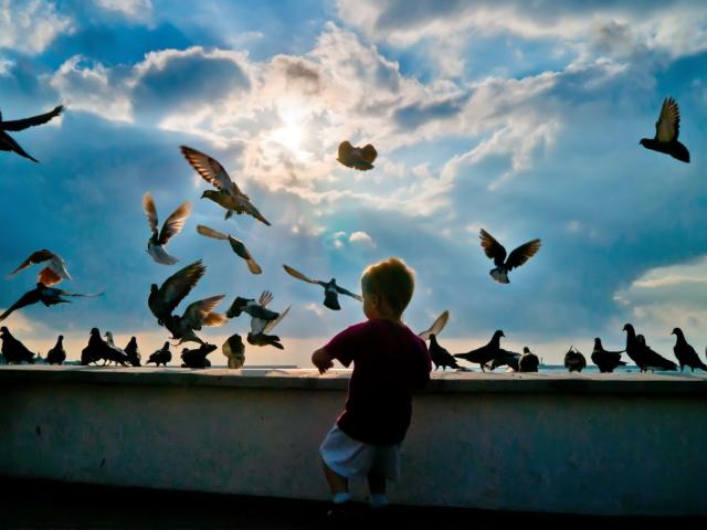 Wallpaper Child and pigeons