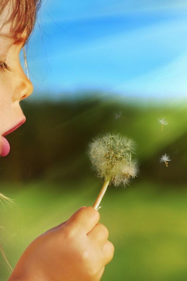 Wallpaper Girl blowing on a dandelion