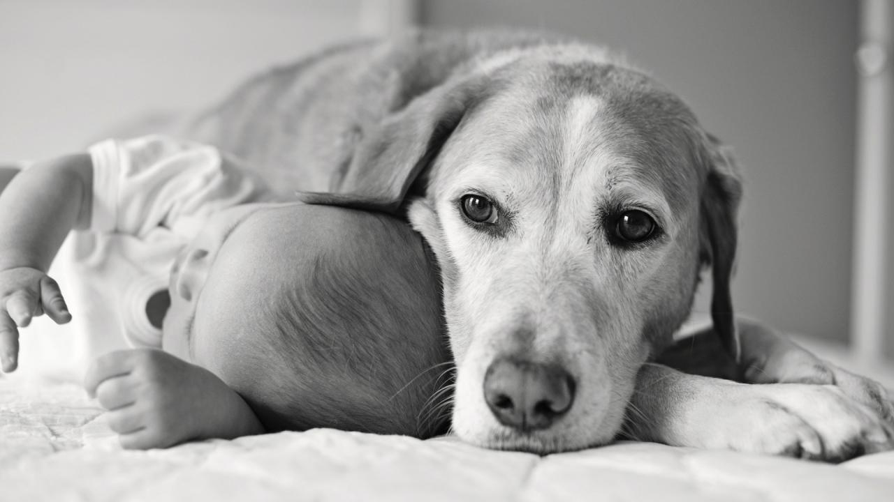 Wallpaper Dog sleeping with a child
