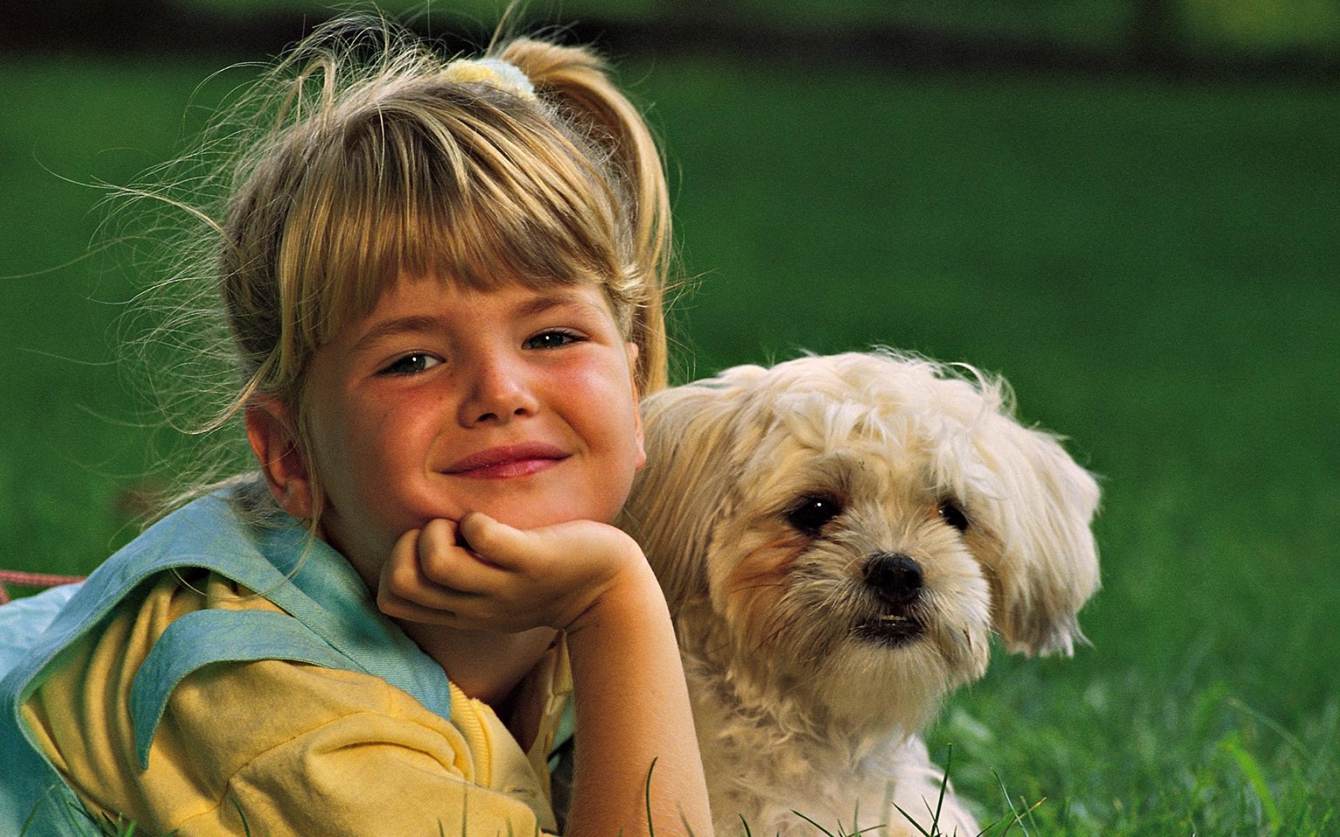 Wallpaper Girl with a white dog