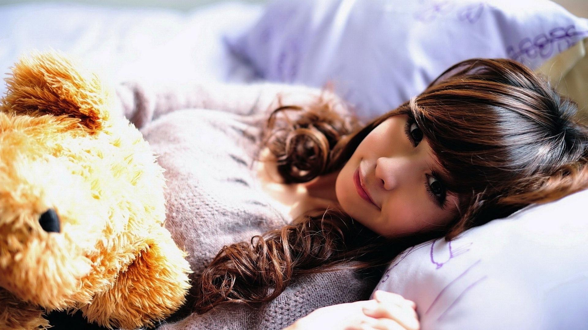 Wallpaper Girl with a toy