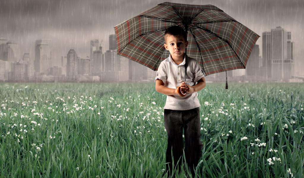 Wallpaper Boy under an umbrella