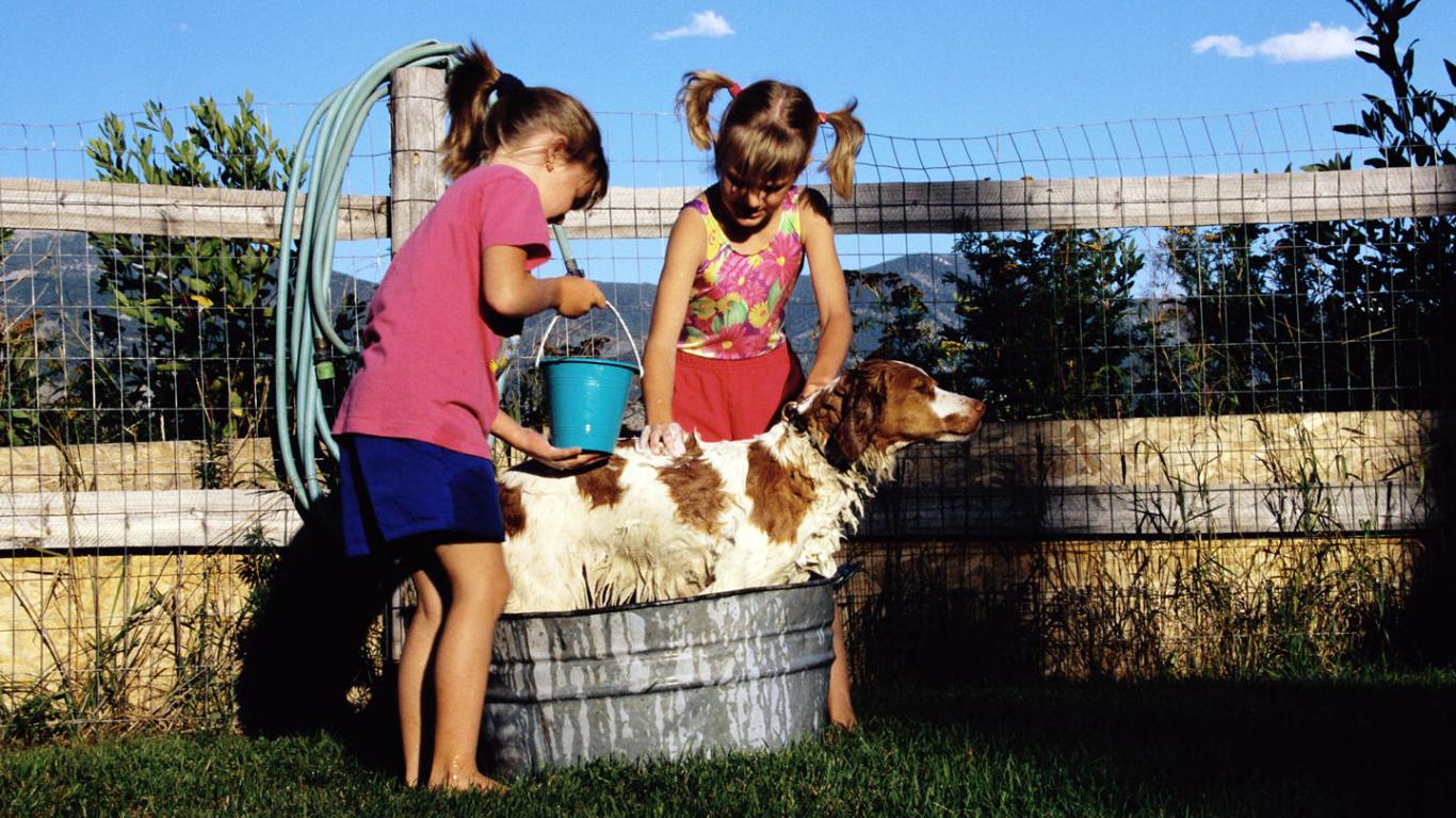 Wallpaper Children with a dog / Children