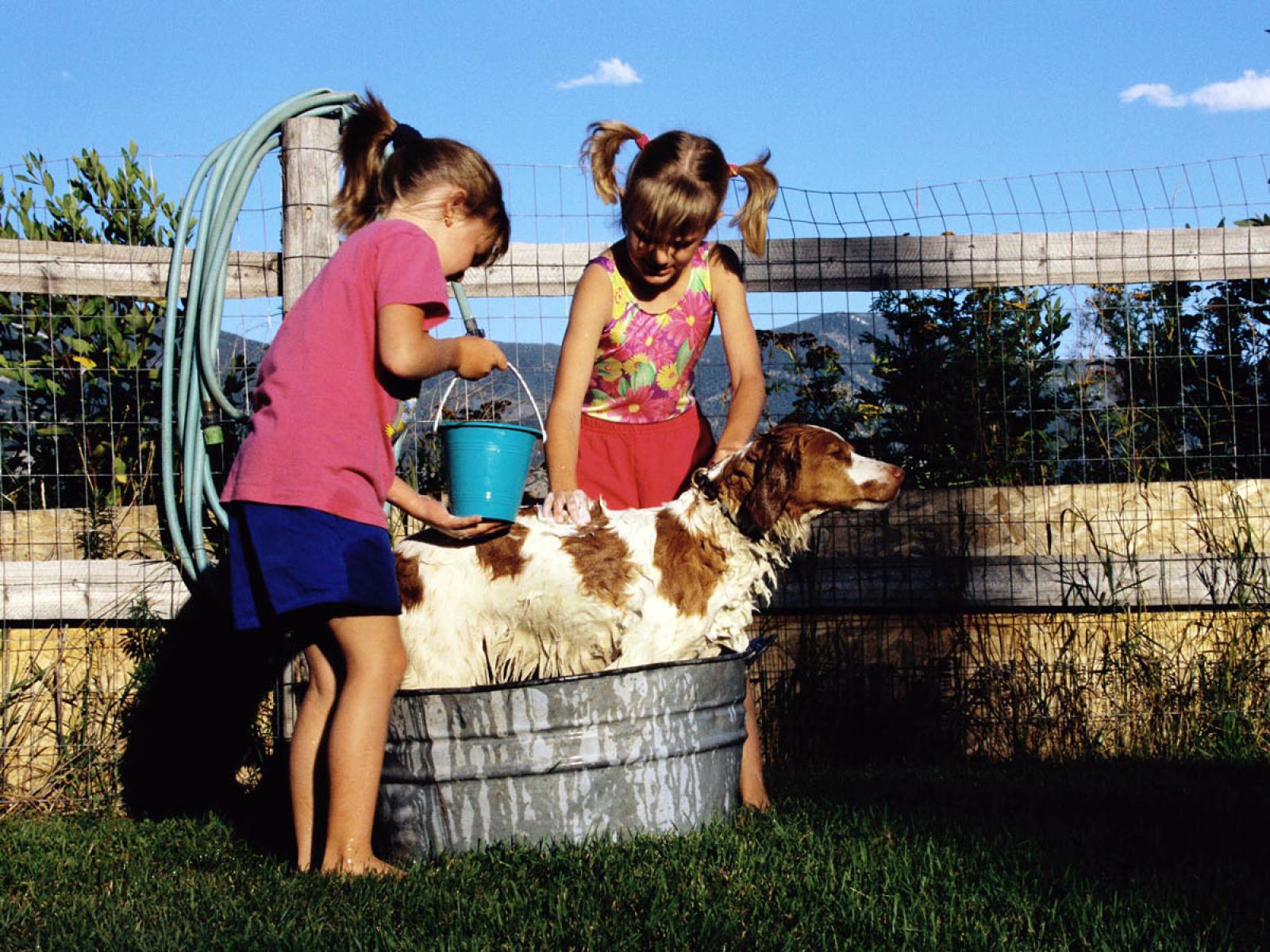 Wallpaper Children with a dog / Children
