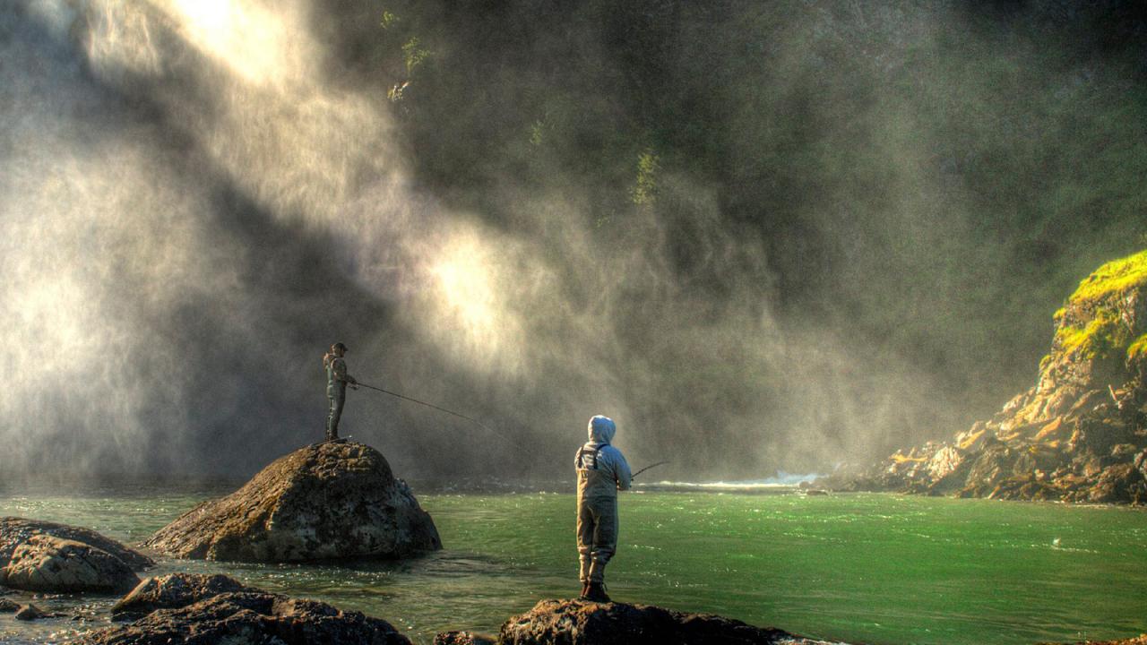 Wallpaper People fishing on the rocks