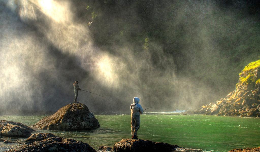 Wallpaper People fishing on the rocks