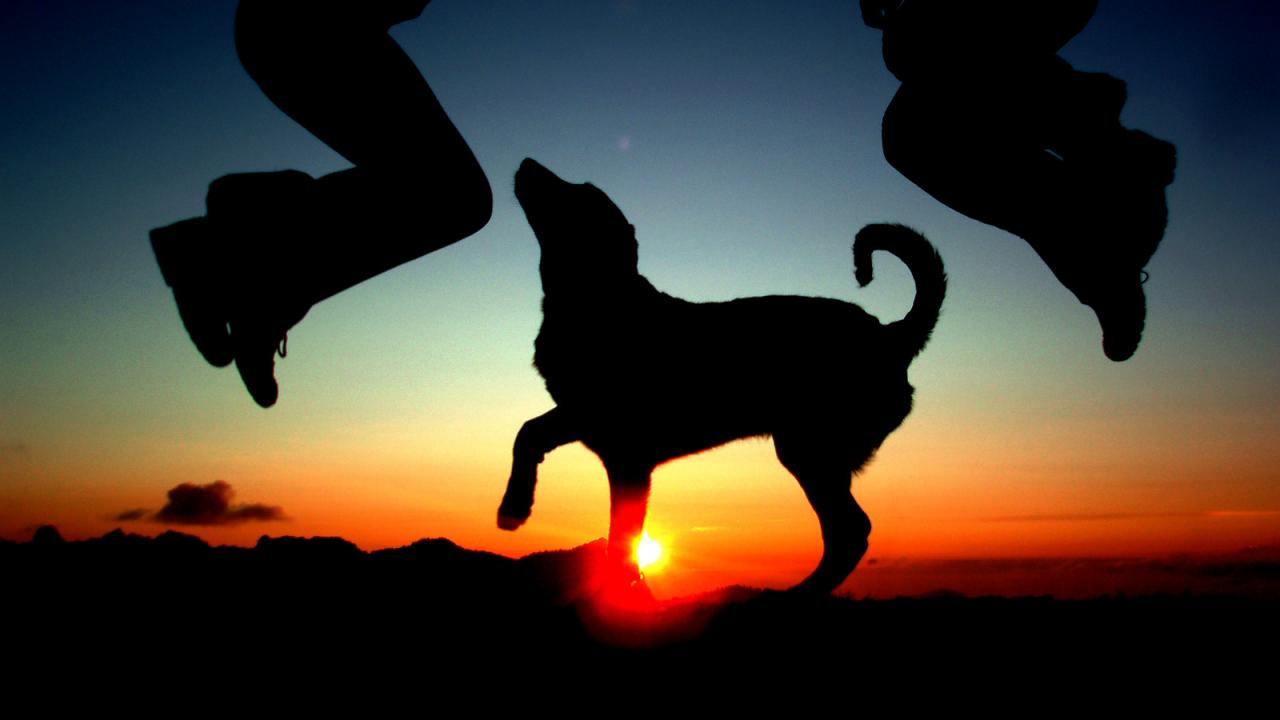 » Wallpaper Dance on sunset with a dog