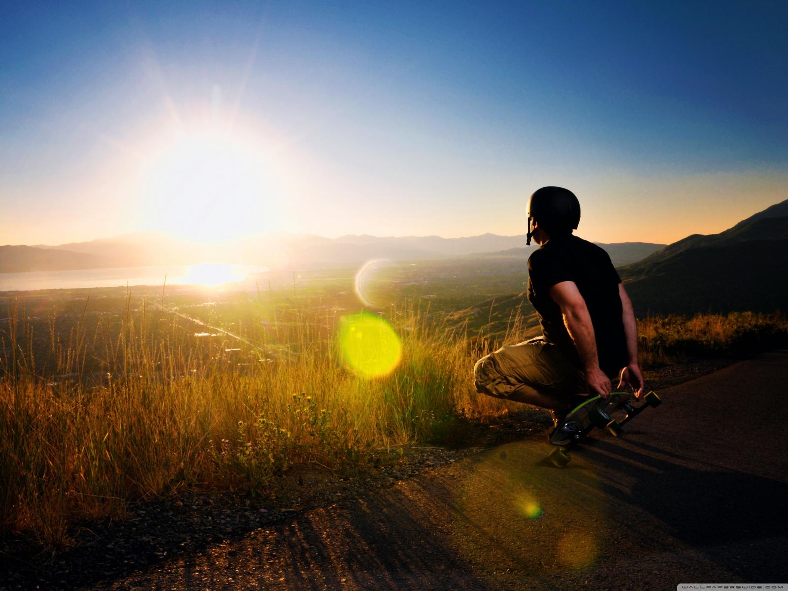 Wallpaper Landscape, Rays of the sun, Skateboarding