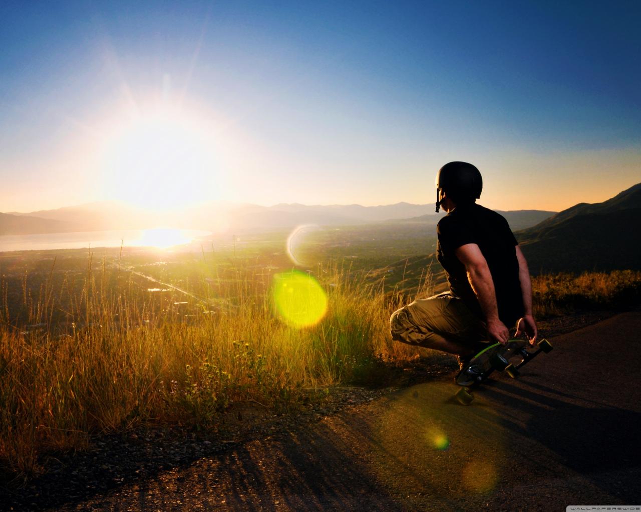 Wallpaper Landscape, Rays of the sun, Skateboarding