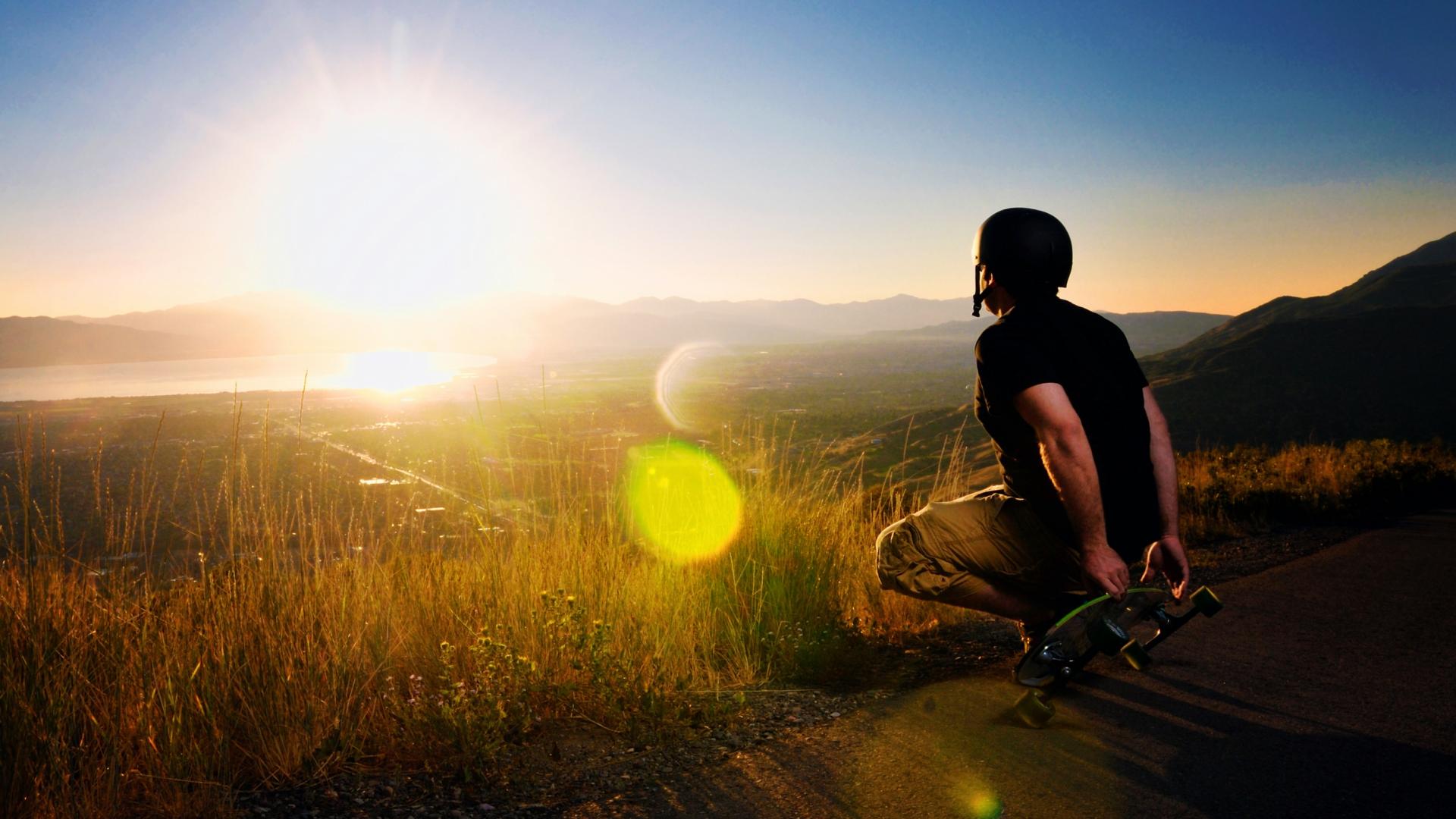 Wallpaper Landscape, Rays of the sun, Skateboarding