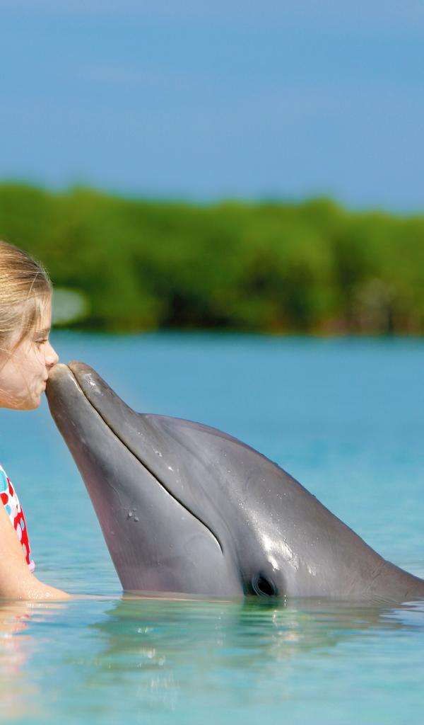 Wallpaper Girl and Dolphin