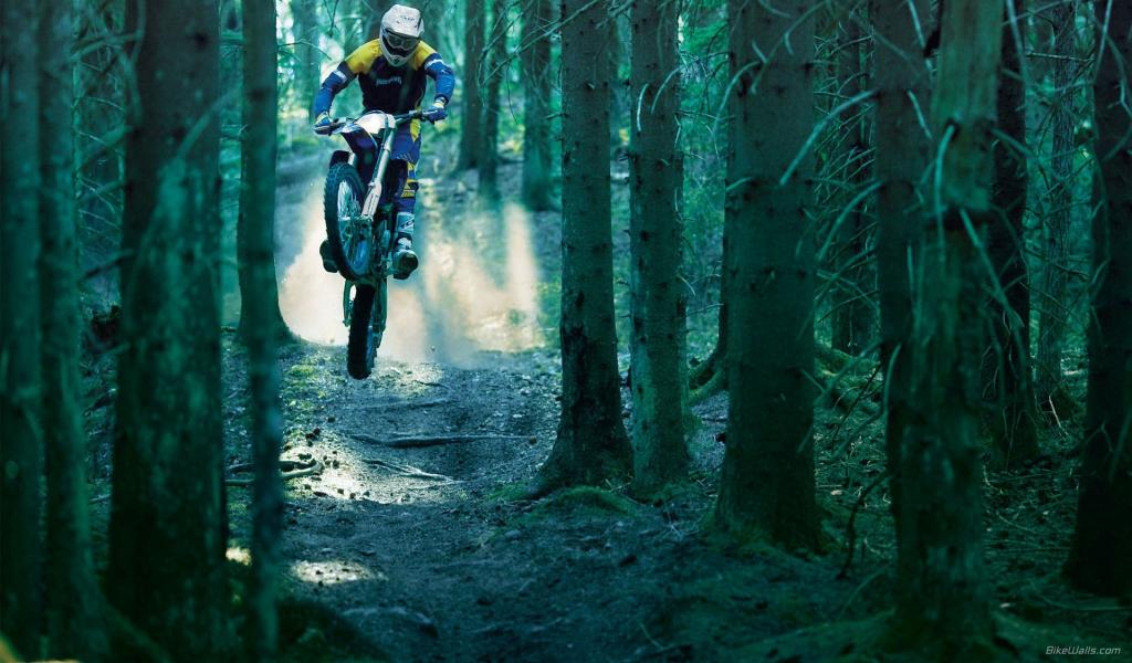 Wallpaper Rider on a motorbike in the woods