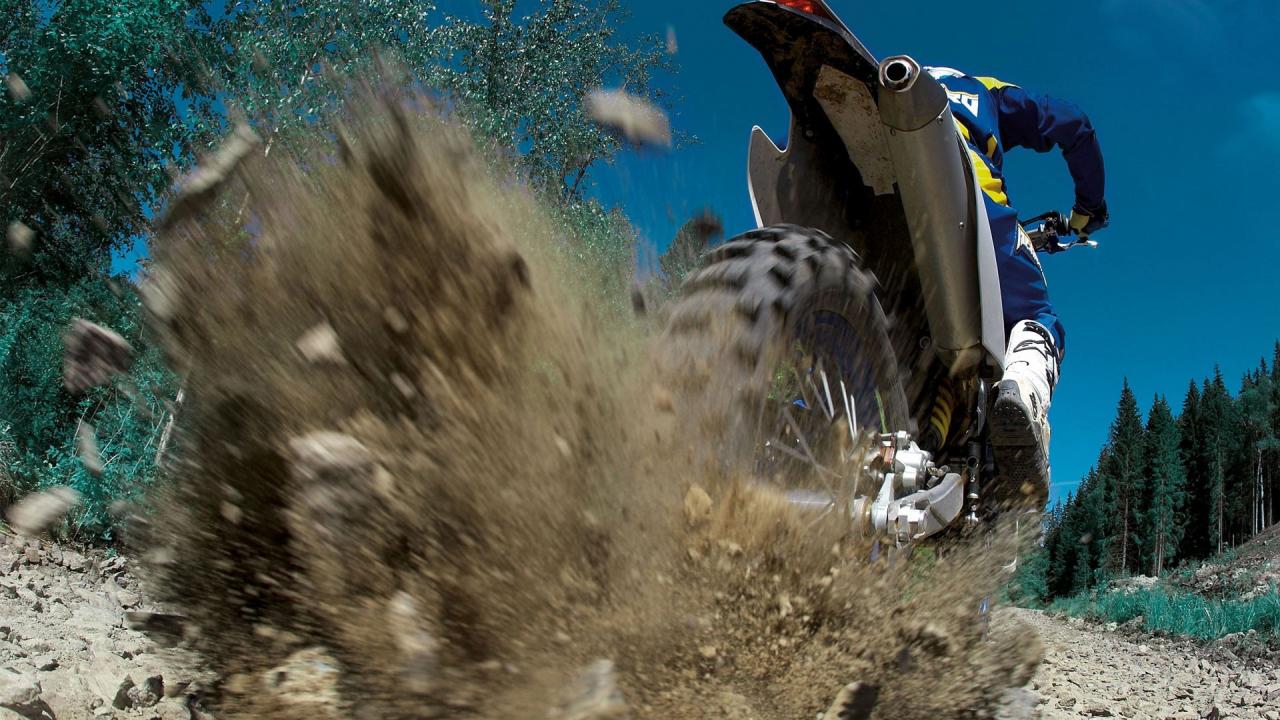 Wallpaper Loose gravel from under the wheels of a motorbike