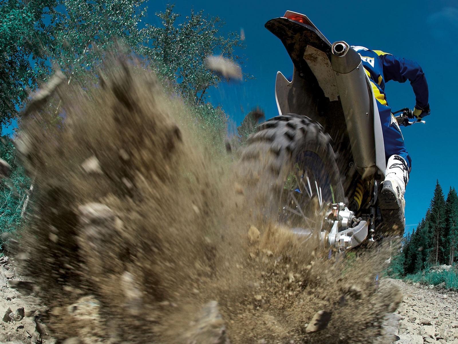 Wallpaper Loose gravel from under the wheels of a motorbike