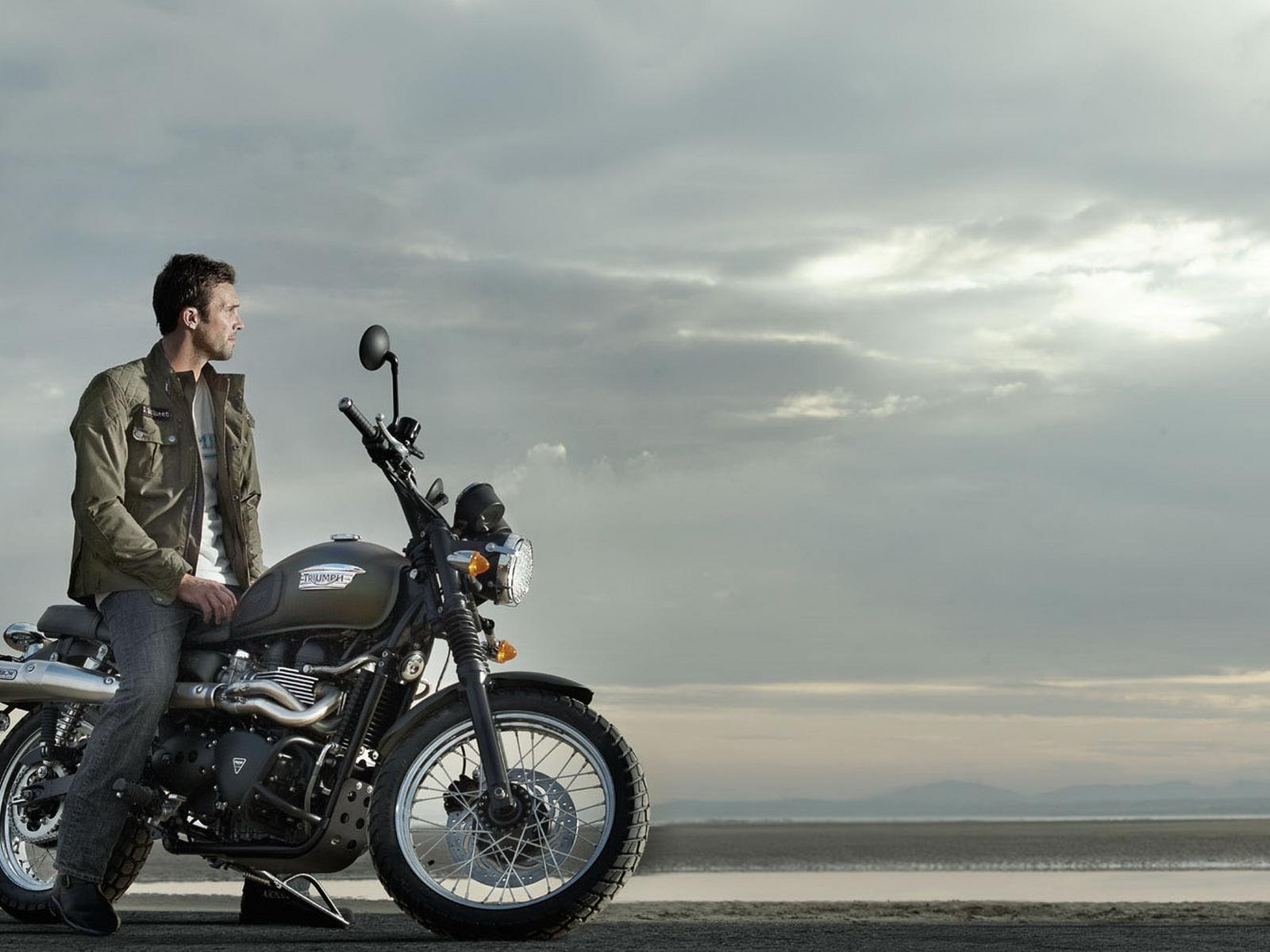 Wallpaper Triumph Scrambler on seaside