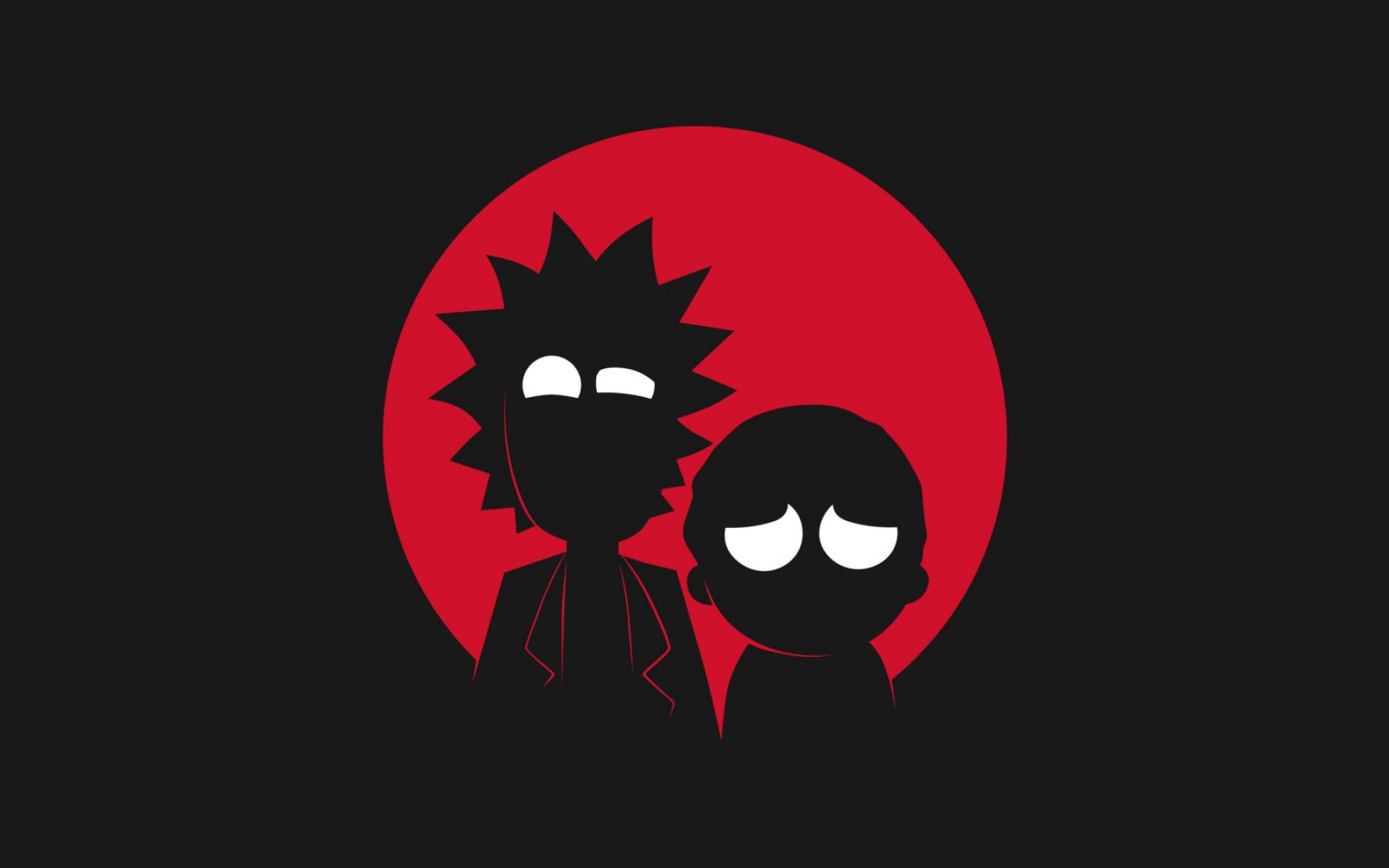 Wallpaper Silhouettes of cartoon characters Rick and Morty