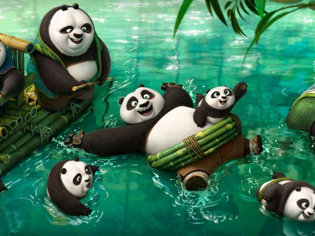 Wallpaper Panda frolic in the water, cartoon Kung Fu Panda