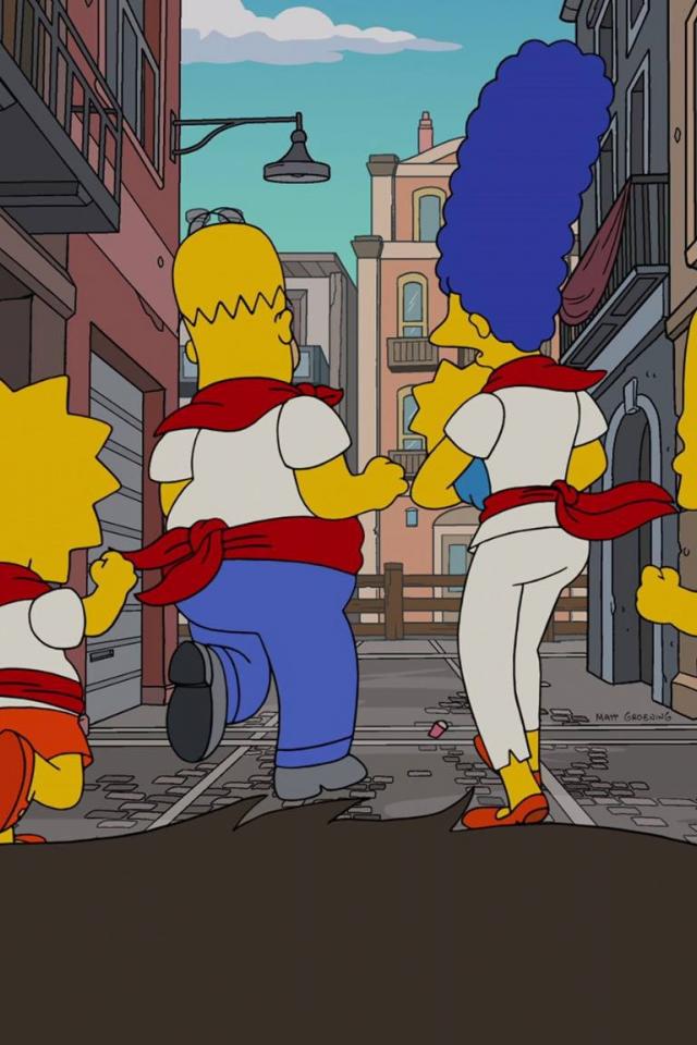 Wallpaper The Simpsons escape from a bull